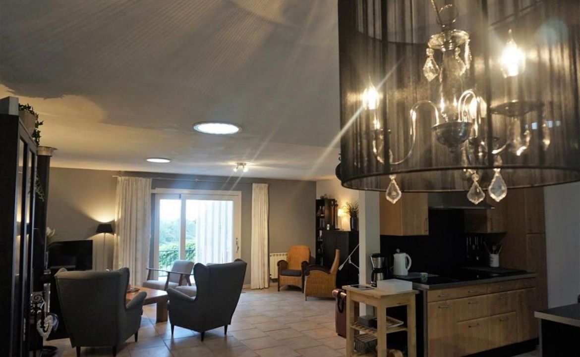 Ruime comfortabel ingerichte woonkamer met schuifdeur naar het terras.