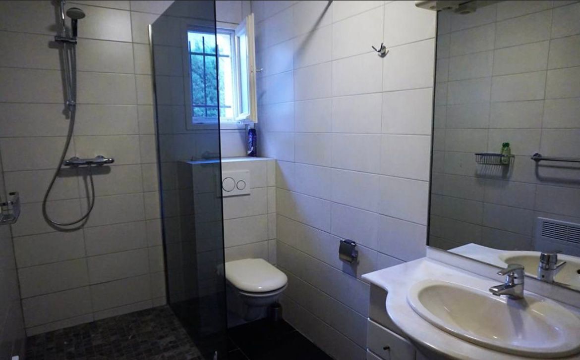 Tweede badkamer met inloopdouche, badkamermeubel en vrijhangend toilet.Badkamers/slaapkamers liggen aan verschillende kanten van de woning, hierdoor privacy voor iedereen!